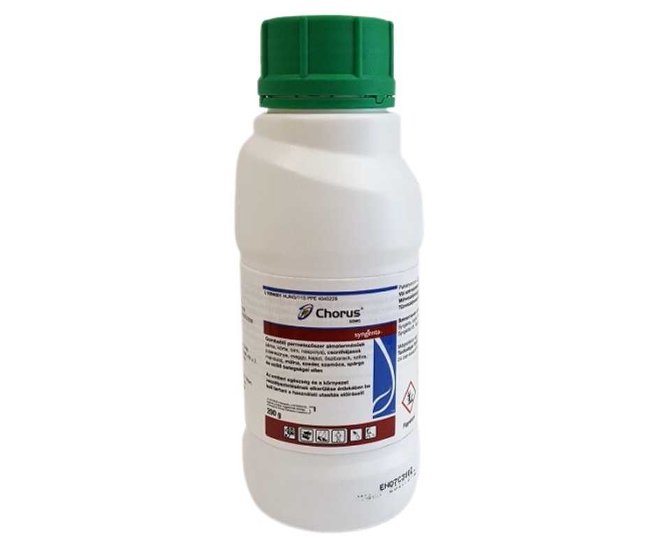 A Chorus 50 WG a Syngenta által forgalmazott, felszívódó (szisztemikus) gombaölő szer, amely különleges tulajdonsága révén már alacsony (\(5\)-\(10\ ^{\circ }\text{C}\)), akár fagypont közeli hőmérsékleten is hatékony a korai varasodás, monília és szürkepenész ellen.