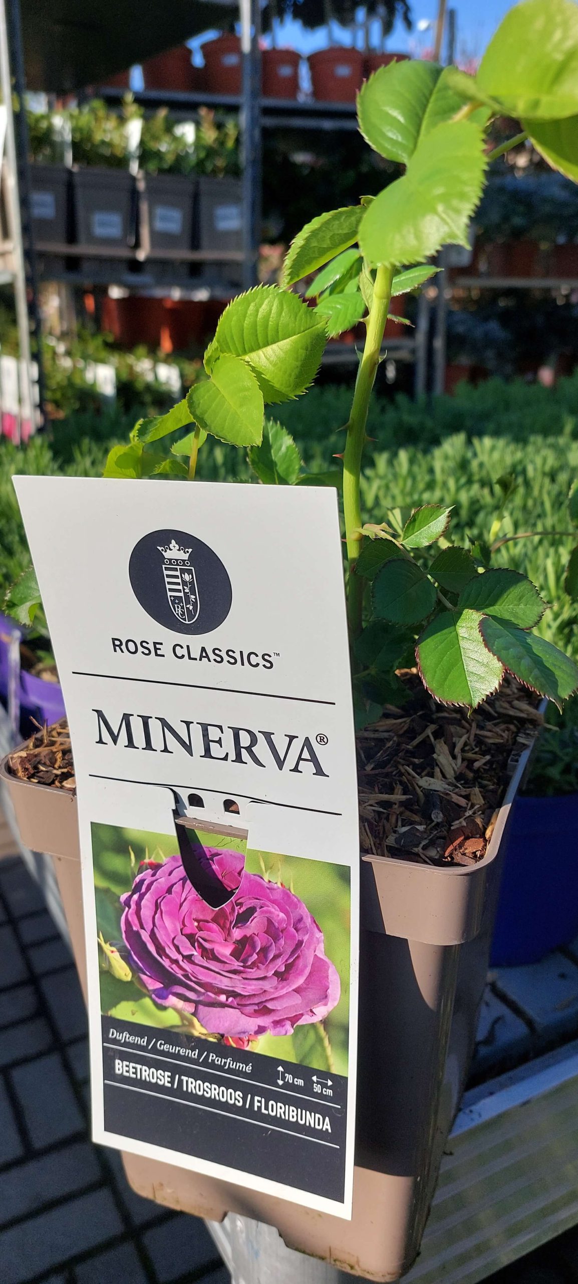 A Rosa Minerva egy rendkívül dekoratív floribunda rózsa, amely mély lilás-bordó árnyalatú virágaival és intenzív, édeskés illatával az egyik legkülönlegesebb ágyásrózsa fajta.