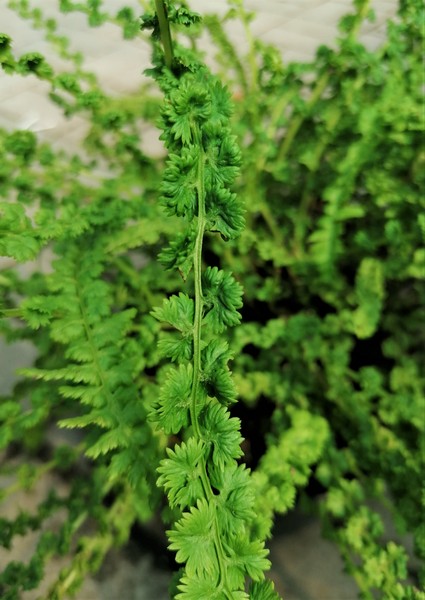 Athyrium filix-femina Frizelliae – Hölgypáfrány, 15-30 cm magasra növő lombhullató páfrány fajta.Finoman csipkézett világos-zöld lombozata ívesen lehajló.