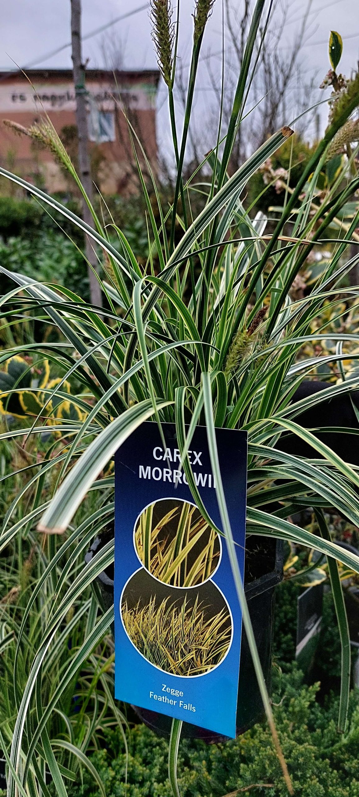A Carex morrowii ‘Feather Falls’ egy dekoratív, örökzöld japán sás, amely széles, ívesen lehajló leveleivel különleges textúrát ad a kertnek. Zöld leveleit krémfehér szegély díszíti, így világosabbá teszi az árnyékos kertrészeket is.