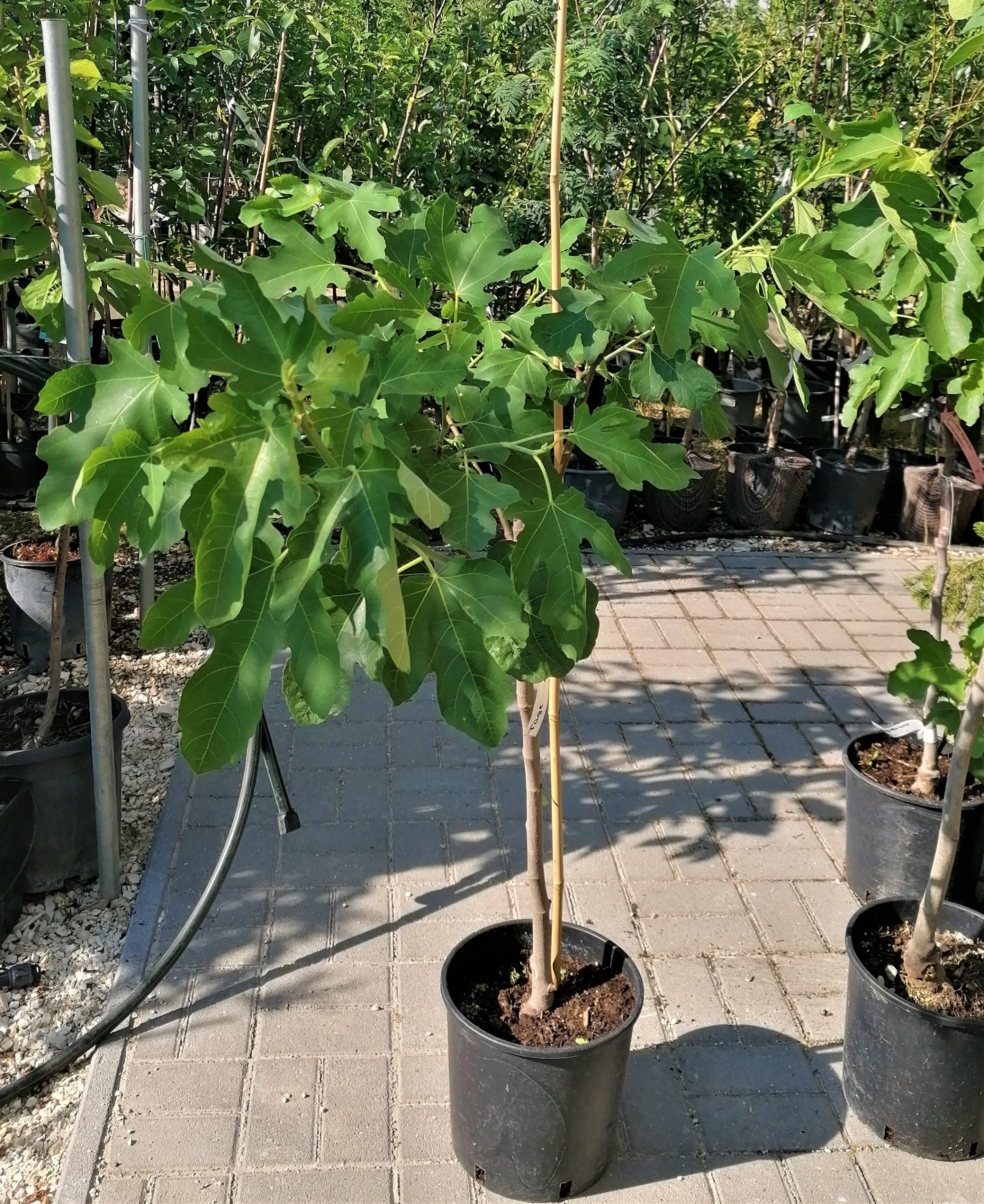 Ficus carica ‘Dottato’ – Füge kb. 110-120 cm, ‘Dottato’ Sárga termésű 2-3 m magasra növő, sok meleget és fényt kedvelő növény. Nagyméretű levelei karéjosak, illatosak. Nyár végétől több hullámban érő gyümölcsei sárga színűek. Védett helyen, sok napfényen érzi jól magát. A füge talajban nem válogatós.