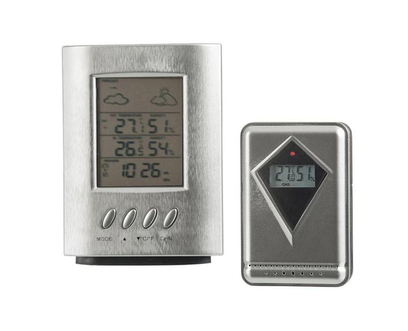 Teljes időjárás-állomás 100%-os LCD kijelzővel a belső/külső hőmérséklet, a belső/külső páratartalom és a légköri nyomás méréséhez. 5 ikonnal jeleníti meg a helyi időjárás-előrejelzést, valamint a dátumot és az időt. Ez a hőmérő egyszerre mutatja az összes adatot, emellett tartalmaz egy alapszintű állomást, amely megjeleníti az összes mérési adatot, valamint méri a belső hőmérsékletet, és egy vezeték nélküli jeladót, amely kezeli a külső hőmérsékleti adatokat.