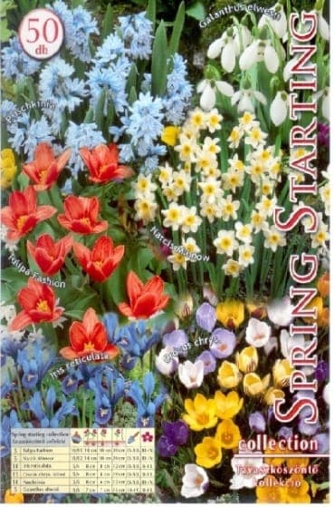A Tavaszköszöntő Kollekció 50db-os kiszerelésben színes összeállítás a tavasz legkorábbi virágaiból, amelyek már februárban, az olvadó hó közt nyílni kezdenek. Évekig díszítenek a sziklakertben vagy évelőágyban, és kifejezetten alkalmasak balkonládában történő nevelésre is. Évről évre szépen virágoznak.